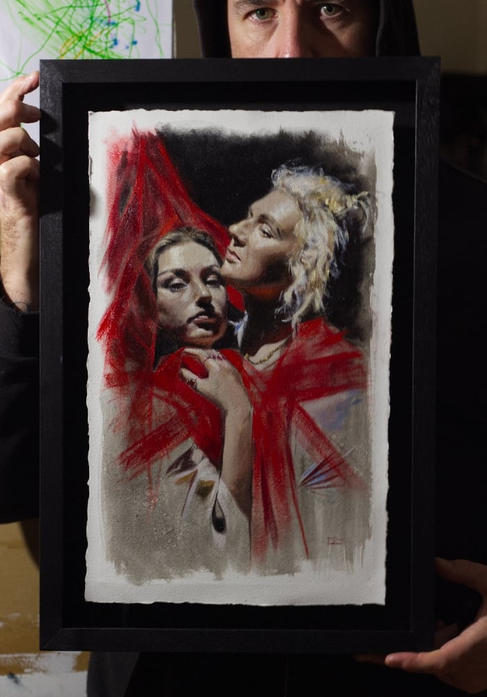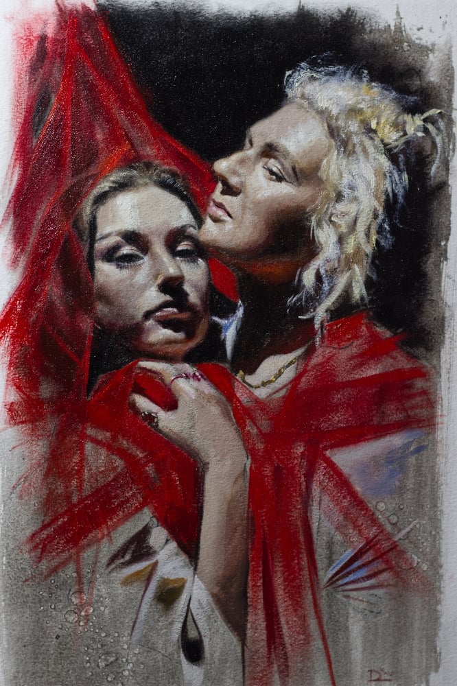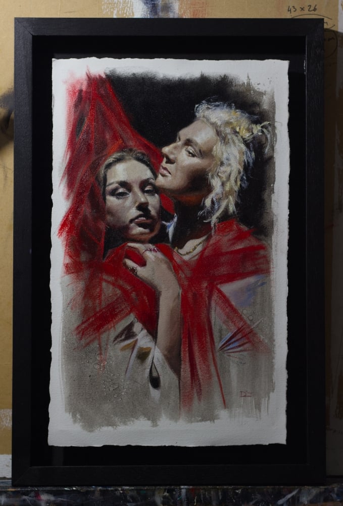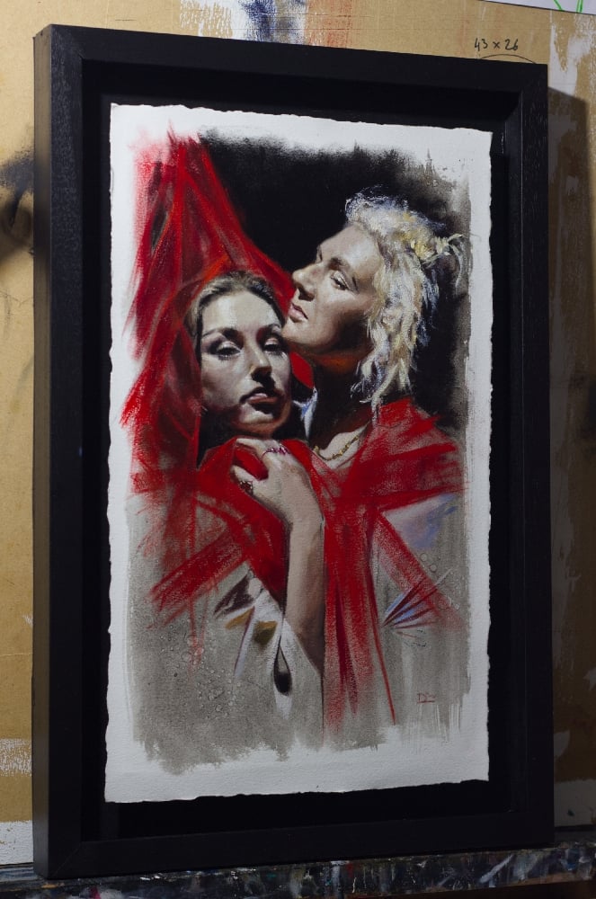 This is an oil on arches paper, mounted on panel, then floated in an open grain black shadow frame